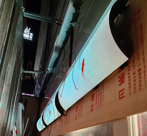 熱虎上海店室內p2.5曲面屏由上海智彩電子科技有限公司承制。該曲面屏采用p2.5軟膜組,輕薄,柔韌性好。屏幕高清顯示,色彩細膩還原性好。